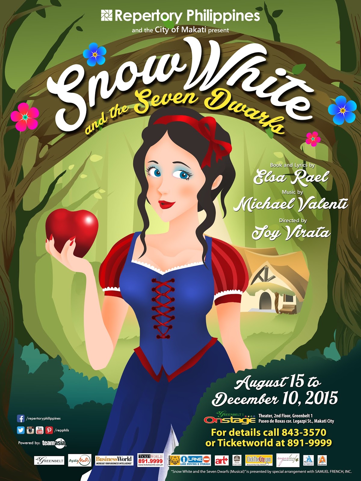 Snow White and the Seven Dwarfs will be staged until December 10, 2015 at the Onstage Theater in Greenbelt 1, Makati City. Book your tickets through www.ticket world.com.ph